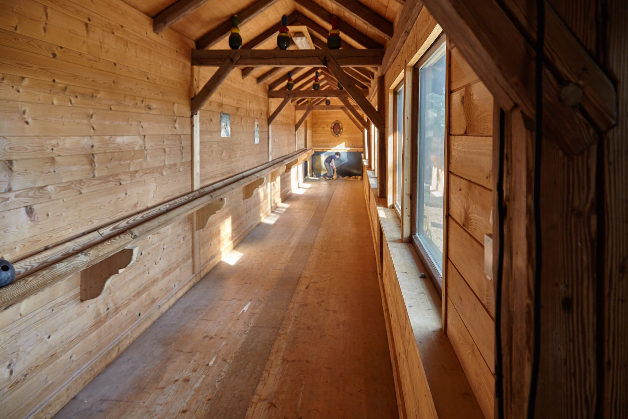 Erleben Sie die Holzkegelbahn im Biergarten von Leonberg in Bayern. Genießen Sie die entspannte Atmosphäre und die traditionelle bayerische Gastlichkeit.