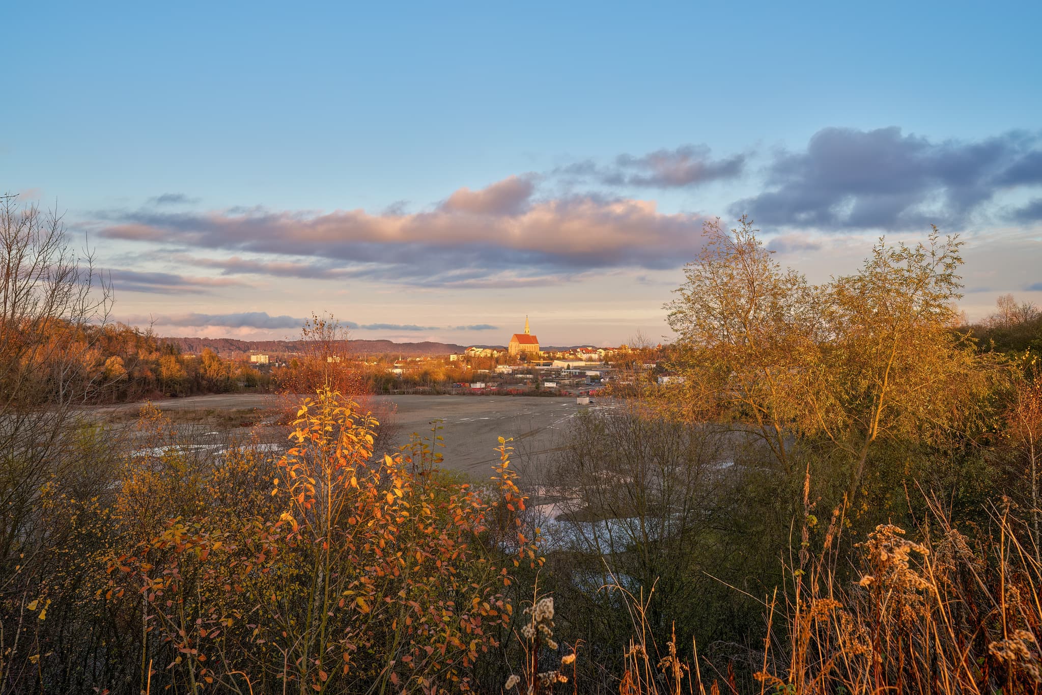 Kiesgrube Altötting nach Neuötting mit Kirche St. Nikolaus