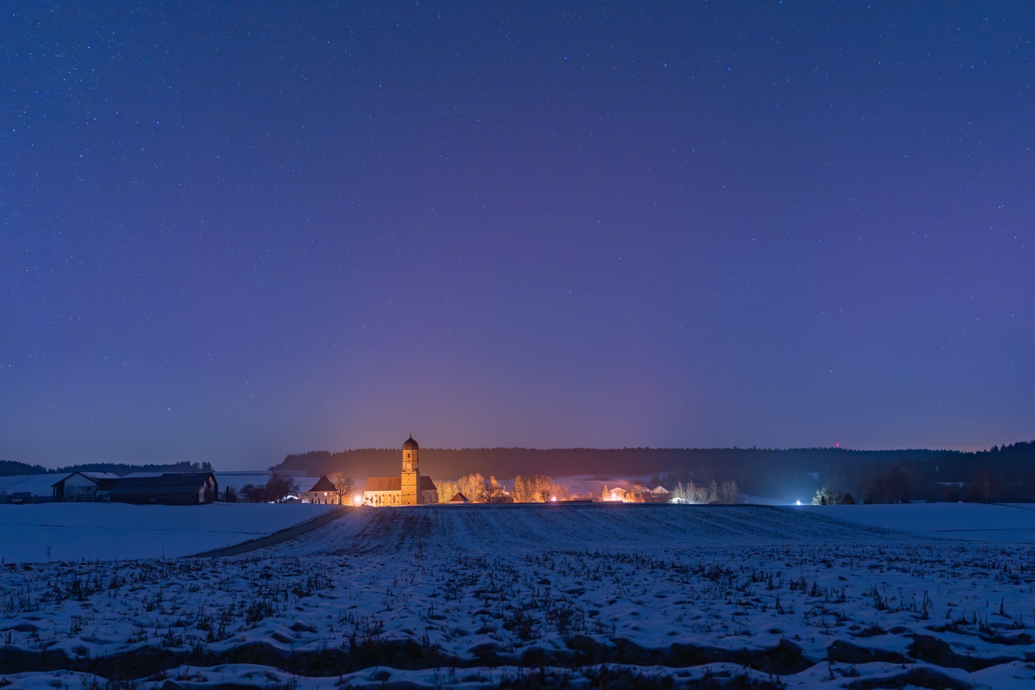 Kirche bei Nacht in Martinskirchen, Rottal-Inn, Niederbayern