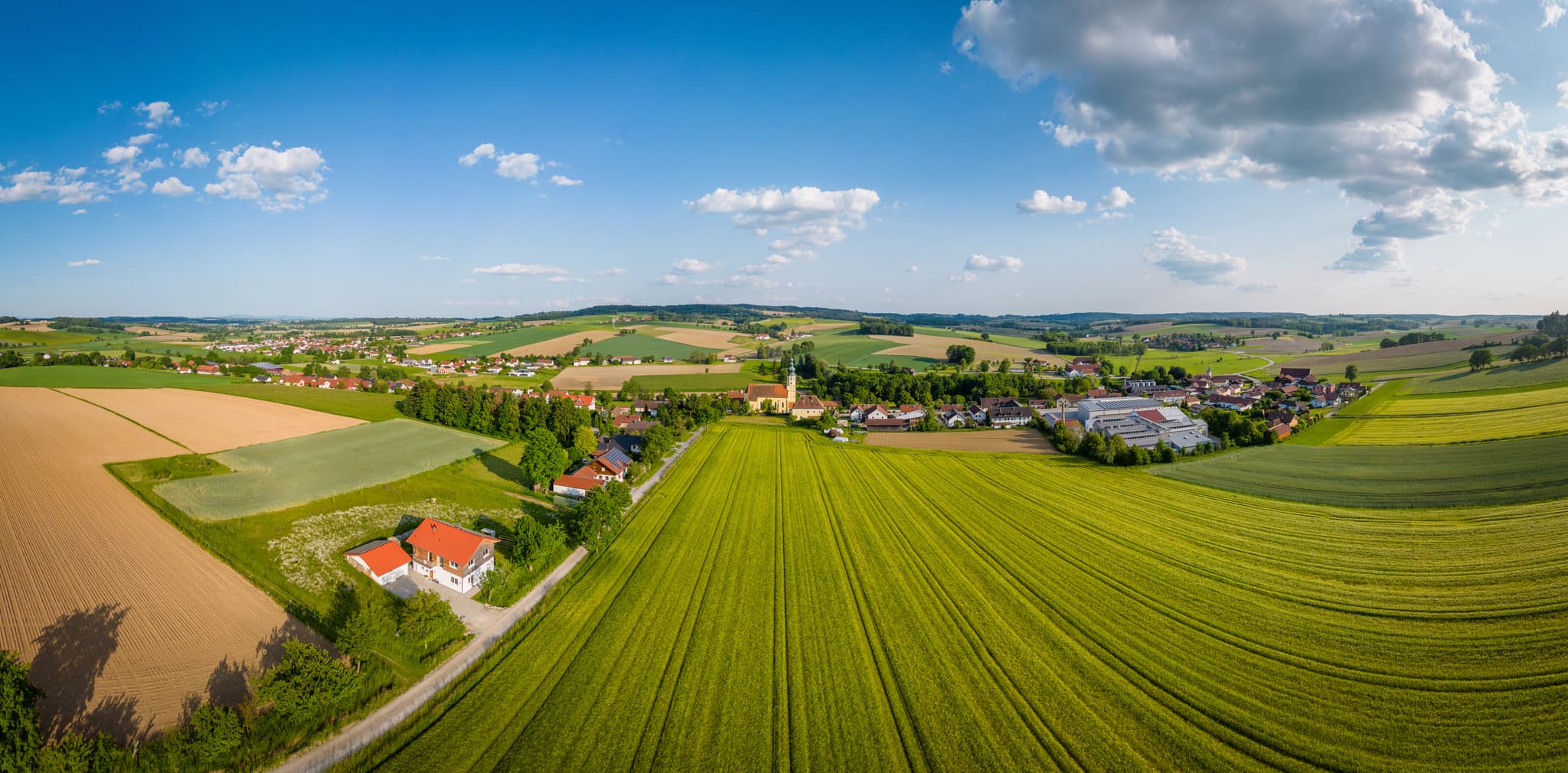 Luftbild der Wallfahrtskirche Mariä Himmelfahrt in Sammarei, einem Ortsteil von Ortenburg im Landkreis Passau, Niederbayern, Deutschland.